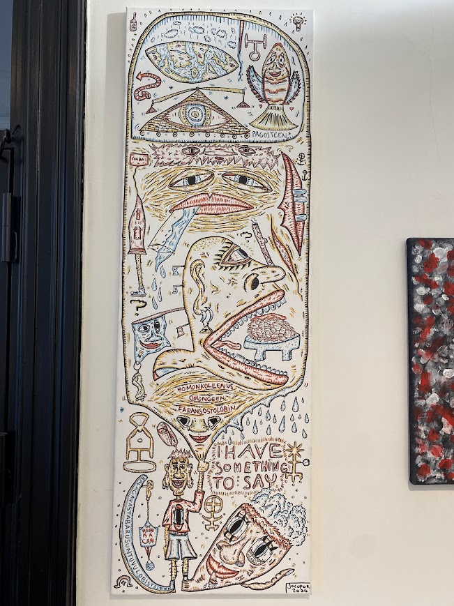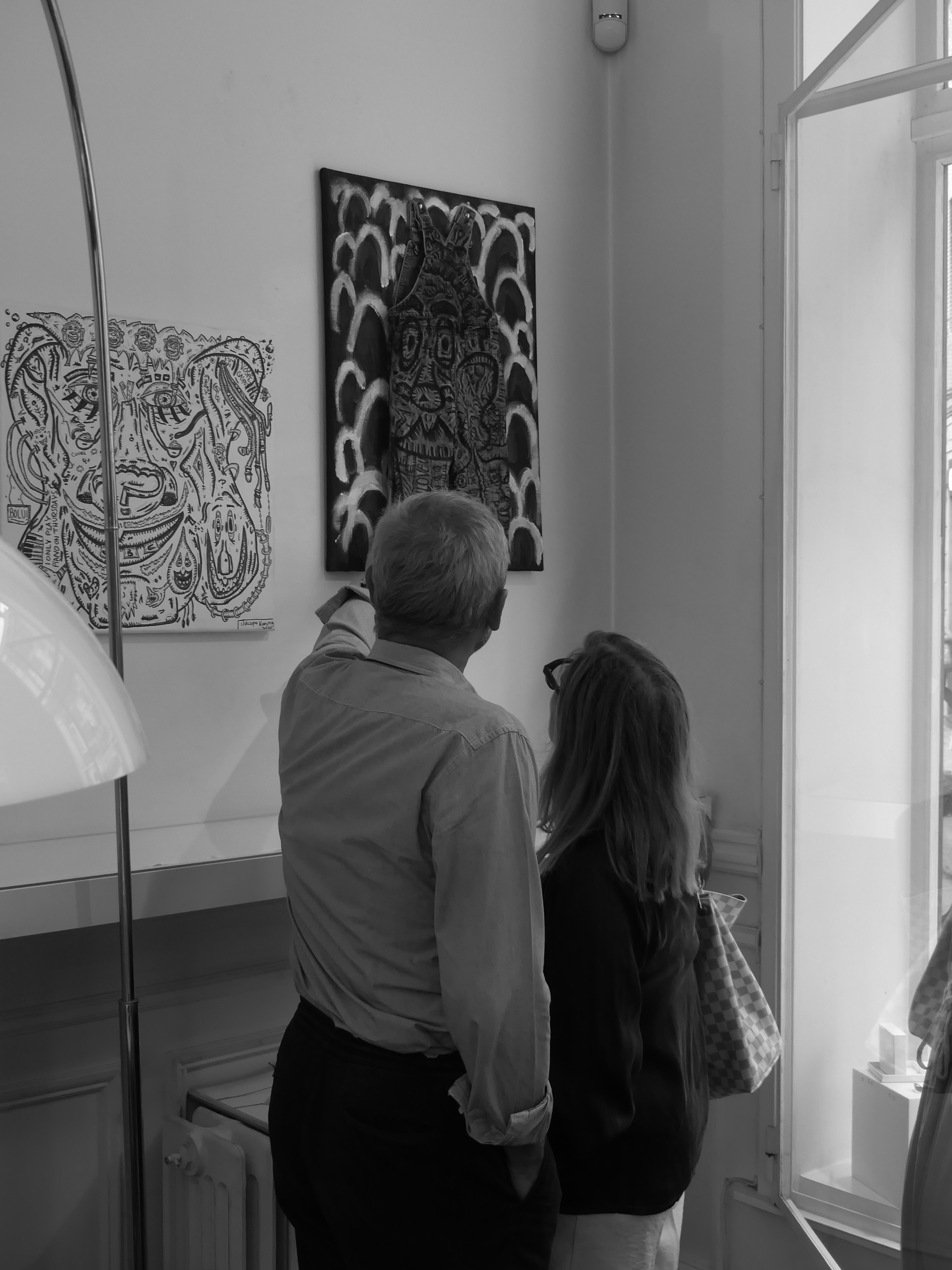 Solo exhibition that was part of the Brussels Design Festival at the Alto Galleria in Ixelles from 07/09/2024 – 31/12/2024. A multidisciplinary collection of pieces that range from short films to clothing, paintings, collages and 3D creations. Metal castings with hand engravings, ludicrous face paintings, unique screenprinted, hand sewn clothing pieces and much more.